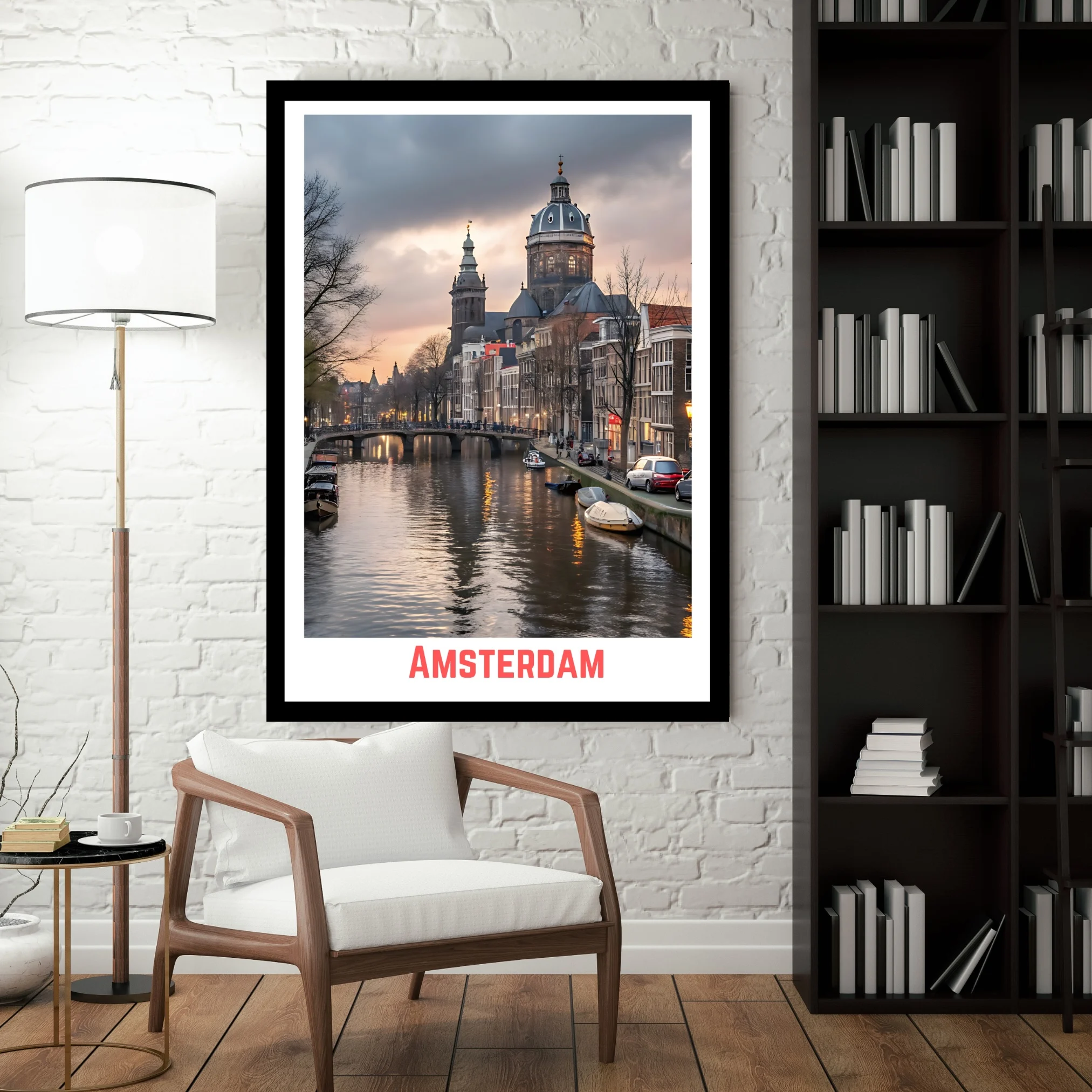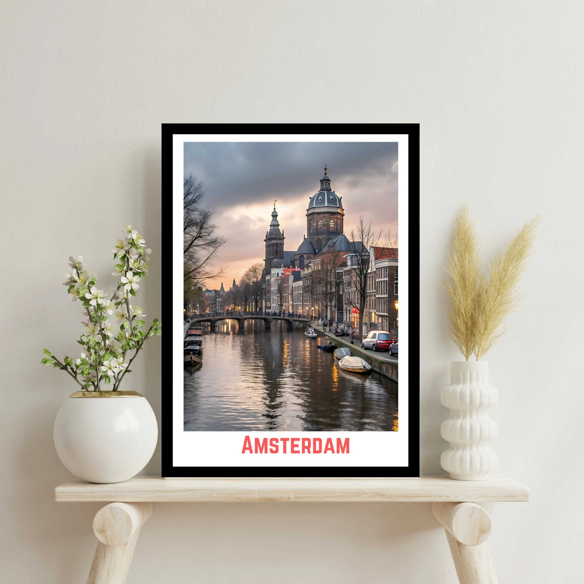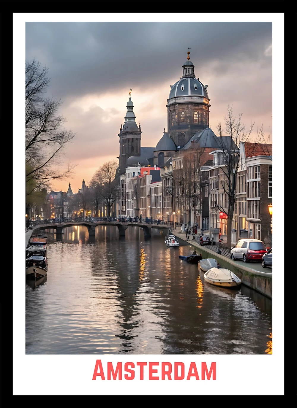 Amsterdam Scenic Digital Art Print – Captivating Canal View