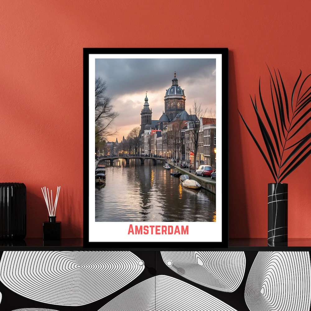 Amsterdam Scenic Digital Art Print – Captivating Canal ViewAmsterdam Scenic Digital Art Print – Captivating Canal View