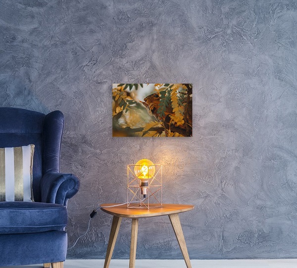 This framed photo on canvas possesses all these: a furry animal lurking behind a tree stem. Your imagination can run wild as you observe this frame even more.